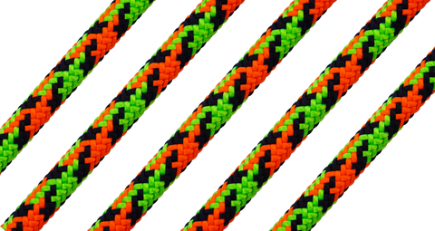 11.8mm 24-Strand Double Braid. A Polyester Cover, 16-Strand Braided Polyester Core and Neon Colored 3-Strand Twisted Core. 6,700 Lb. Avg. Tensile
